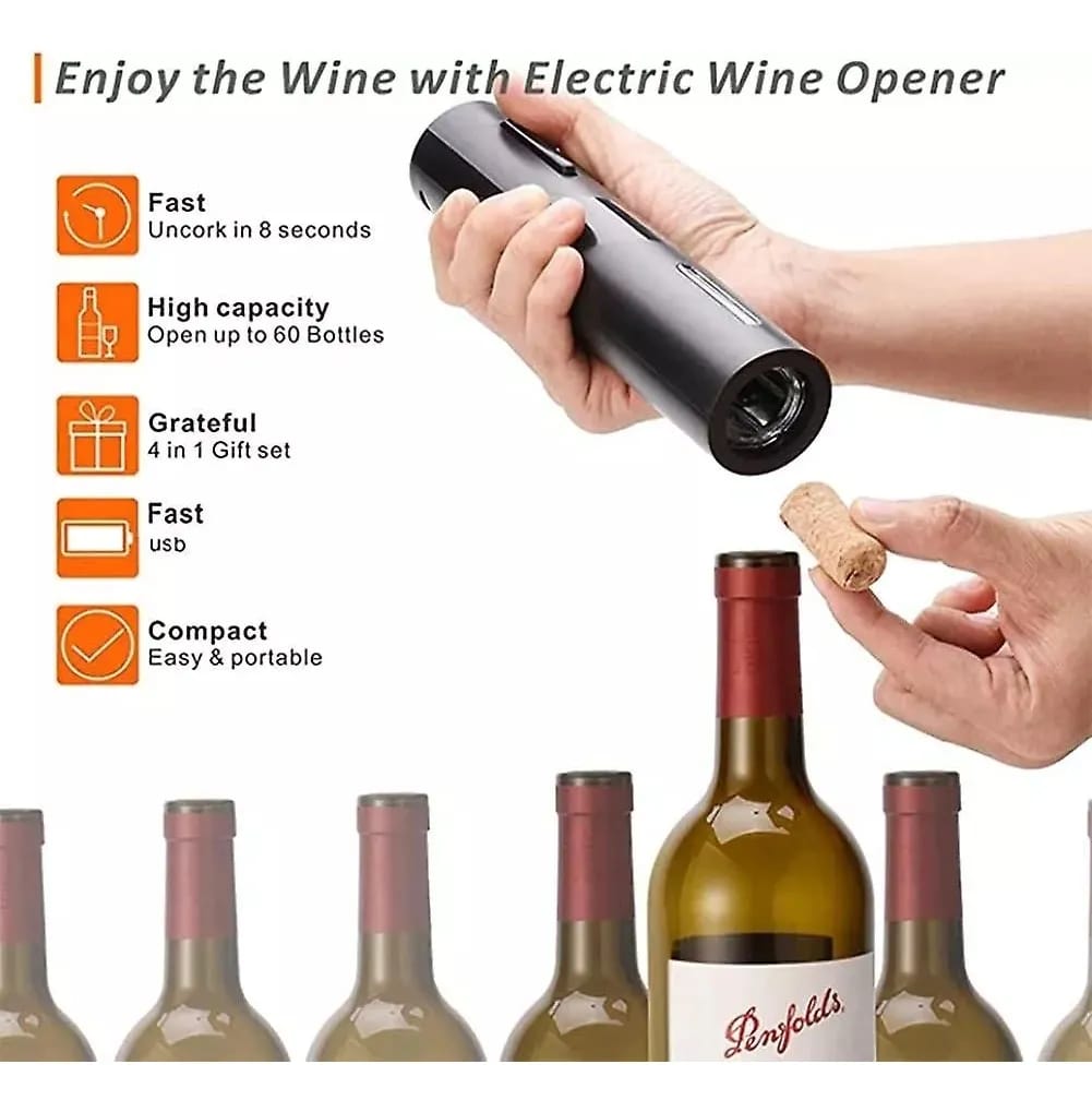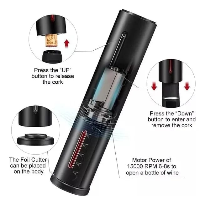 Descubre la forma más elegante y sencilla de abrir tus vinos favoritos un dispositivo pensado para quienes valoran la comodidad, el estilo y la precisión. Este abridor combina tecnología de punta con un diseño sofisticado que hace que cada descorche sea una experiencia única, sin esfuerzo y sin estrés.