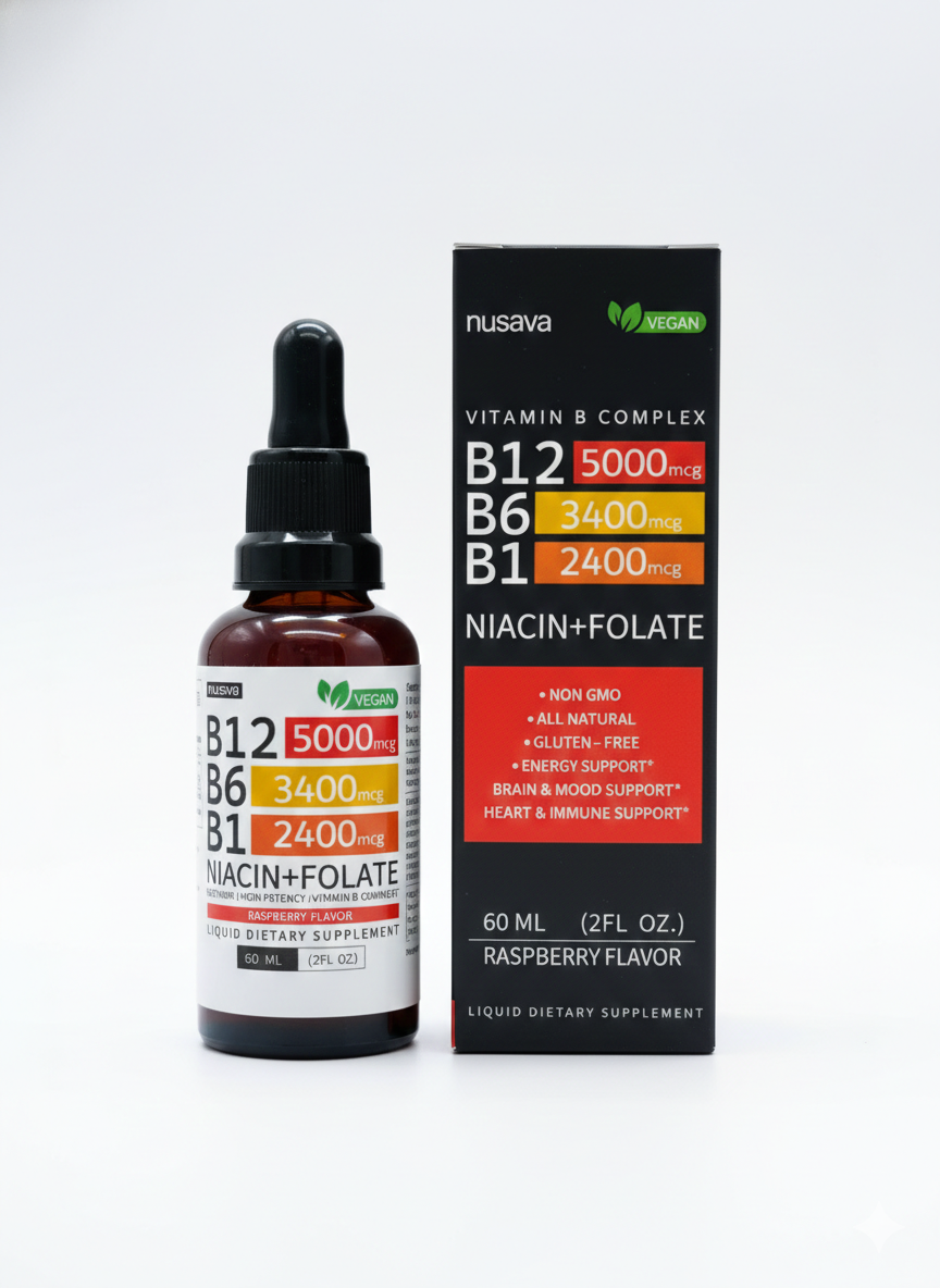 Vitamina B12 Complex de Nusava es un suplemento nutricional diseñado para complementar los niveles de vitamina B12 y nutrientes relacionados, especialmente en quienes tienen deficiencia o requieren apoyo metabólico y energético.